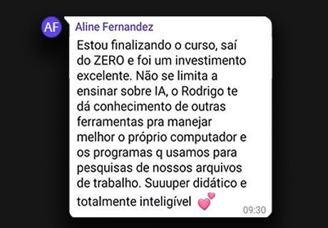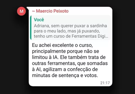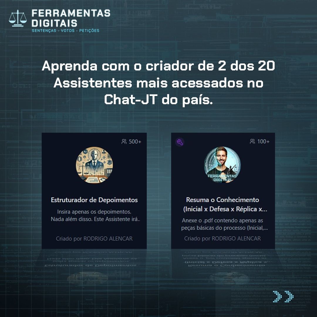 Com comunicação leve, objetiva e prática, voltada para processos ágeis, dedica-se à formação de operadores do Judiciário e à difusão do uso consciente e eficiente da inteligência artificial, com atenção especial ao público 40+ e à rotina jurídica em geral.